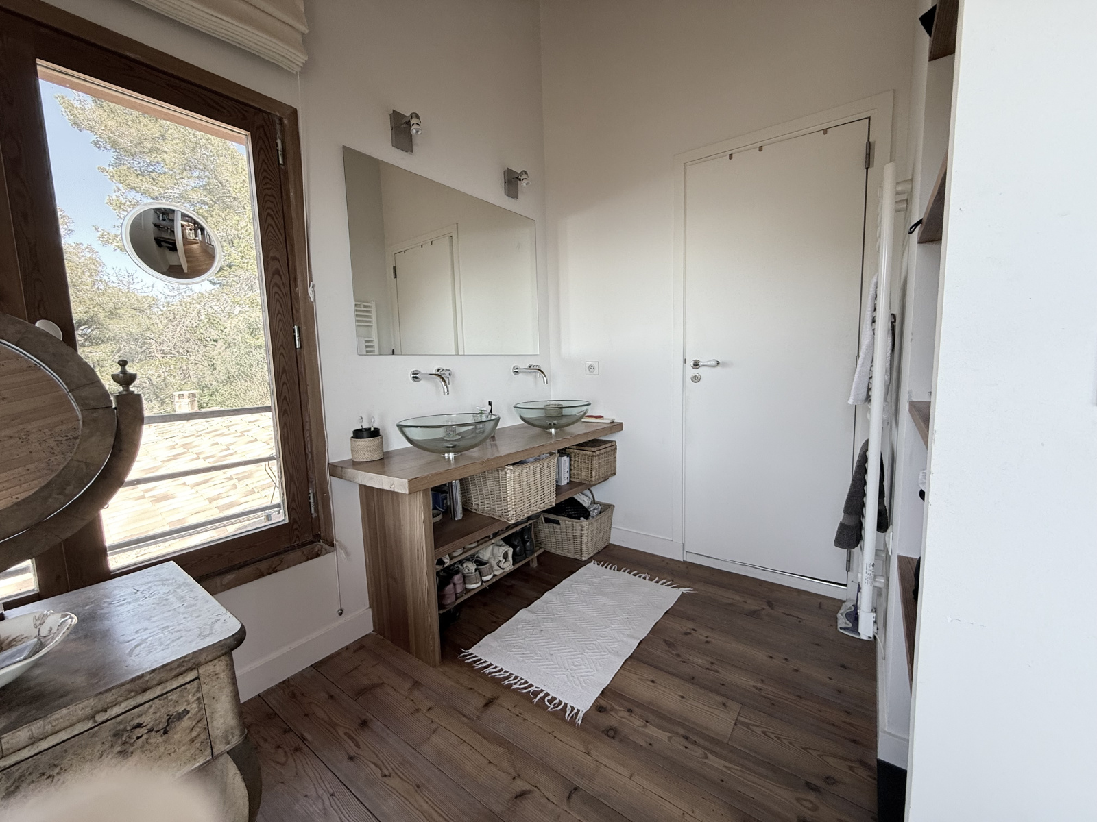 Villa d'architécte s'accompagnant de plusieurs terrasses à vivre bien exposée . Son nombre de pièces et sa distribution, cette villa conviendra tout à fait à une grande famille. L'espace intérieur mesurant 180m² est composé d'un espace nuit comprenant 5 chambres, un coin salon de 34m² et un espace cuisine. Au niveau de l'agencement, la 2ème salle de bain (en plus de la douche séparée) représente un point de confort important. Avec autant de chambres, vous pouvez en convertir une en bureau. Le double vitrage garantit la tranquillité des occupants. Si vous aimez jardiner, ce terrain vous comblera. Pour parfaire votre bronzage, vous disposerez d'un jardin et 3 terrasses. L'habitation vous fait profiter d'une aire de parking.