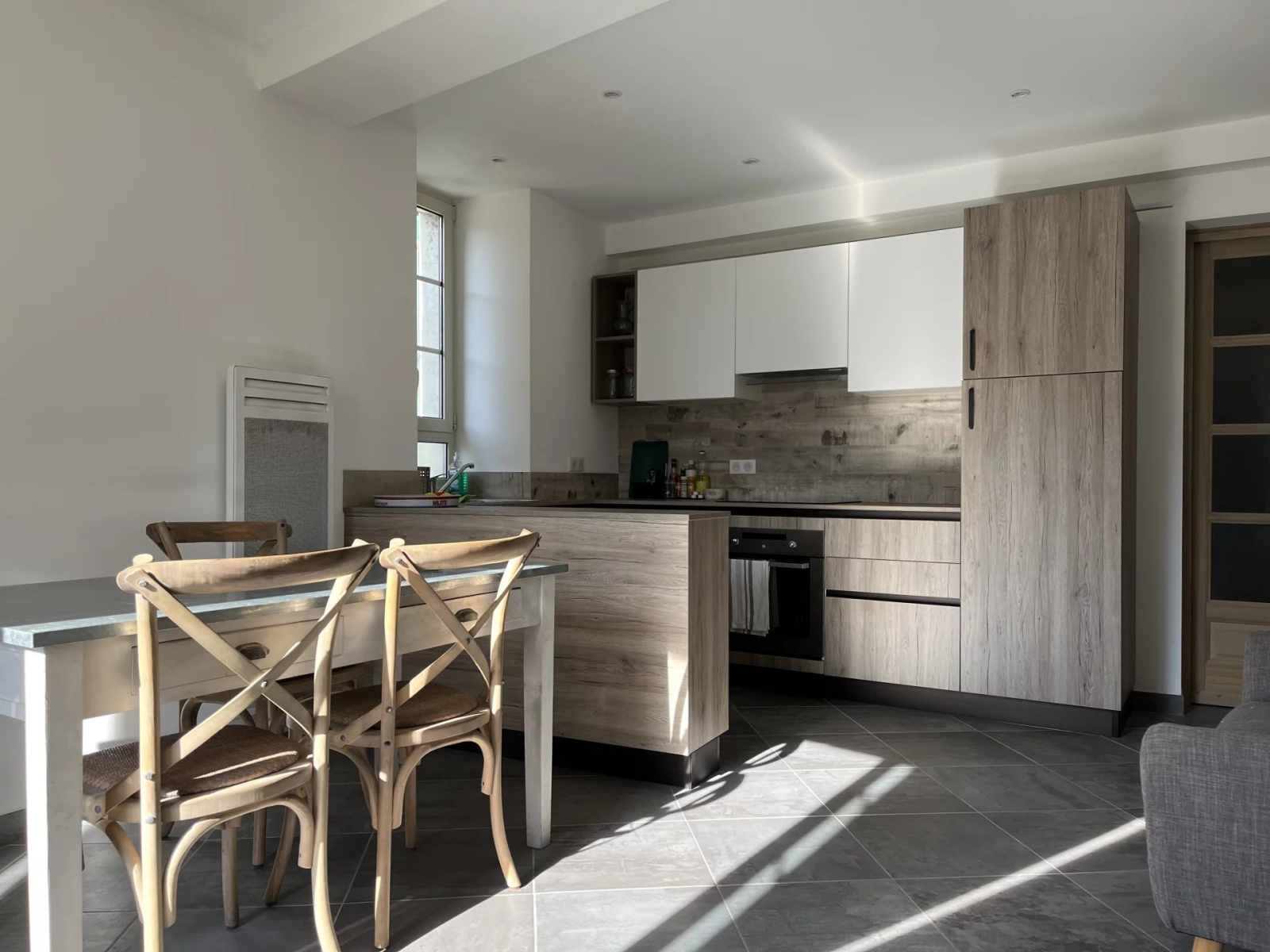 Centre village, exposition Sud/Ouest bel appartement de 2/3 pièces entièrement rénové avec matériaux de qualités, cuisine US équipée et aménager, 2 grande chambres, 2 salle d'eau avec WC, Balcons. Vendu avec Cave.