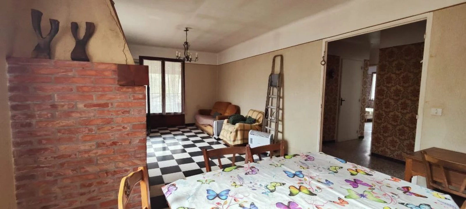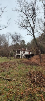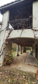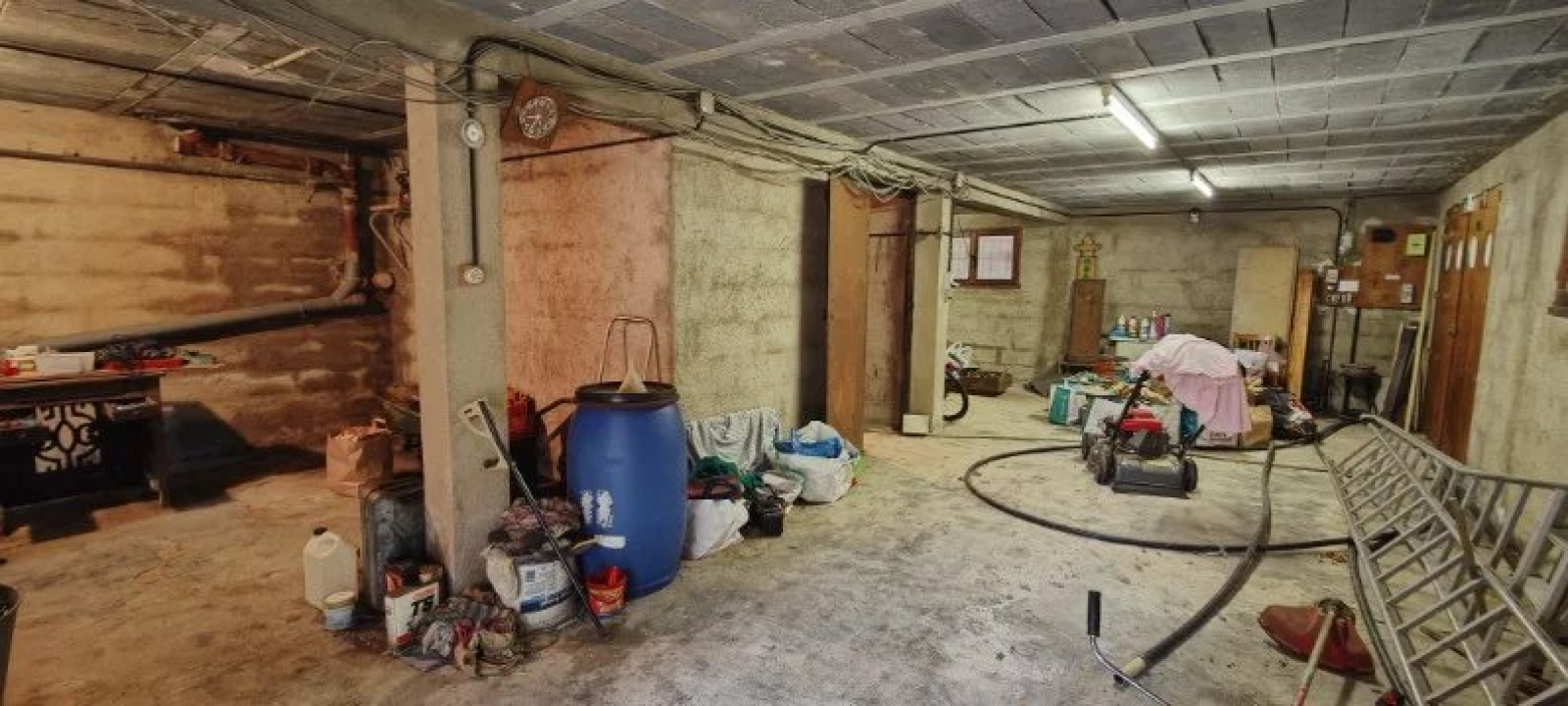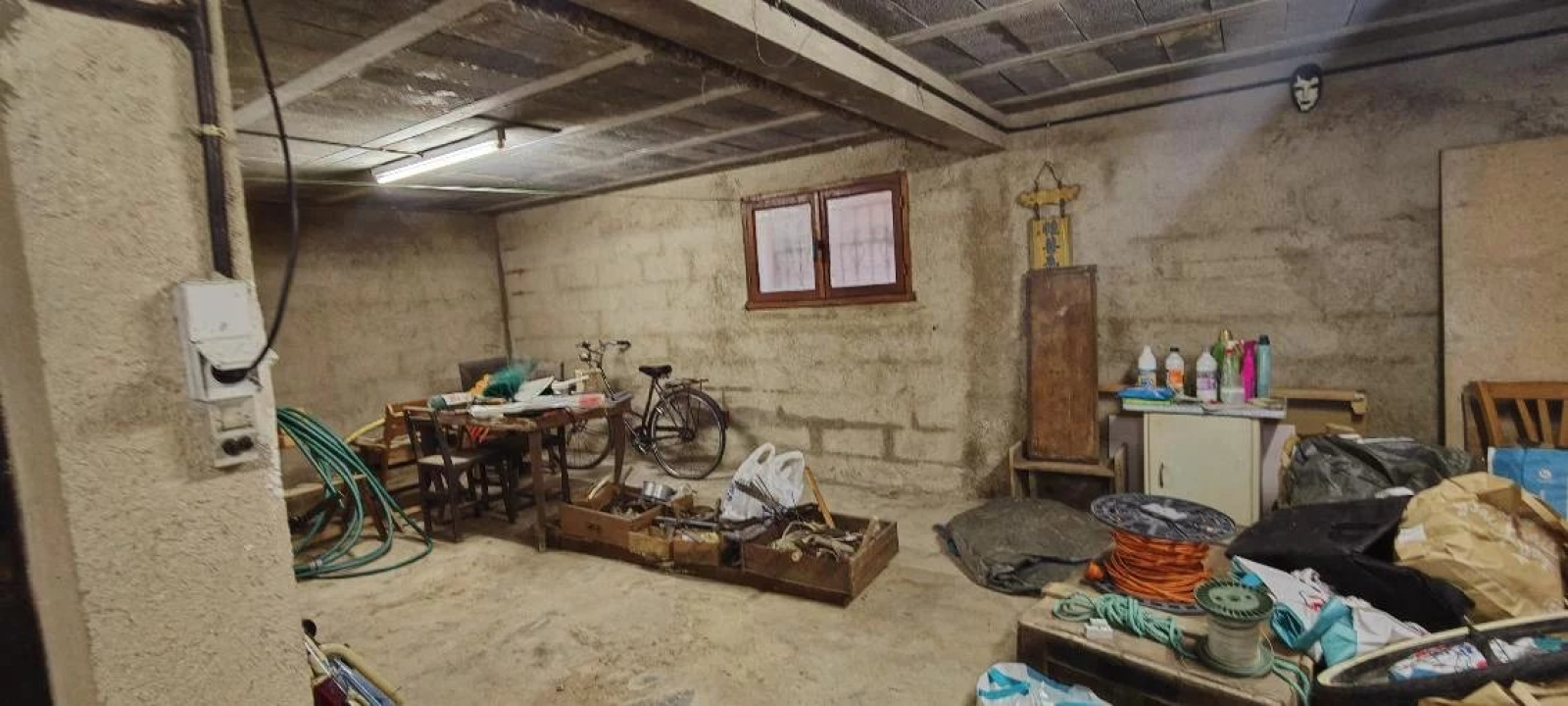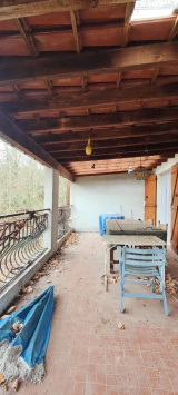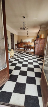 Sur un terrain de 2700 m2 environ, maison à rénover composée d'un garage avec cave et atelier en rez-de-chaussée, un appartement de 4 pièces, en premier étage , cuisine indépendante, vaste séjour avec cheminée, salle de bains, 3 chambres, WC indépendant, terrasse.
