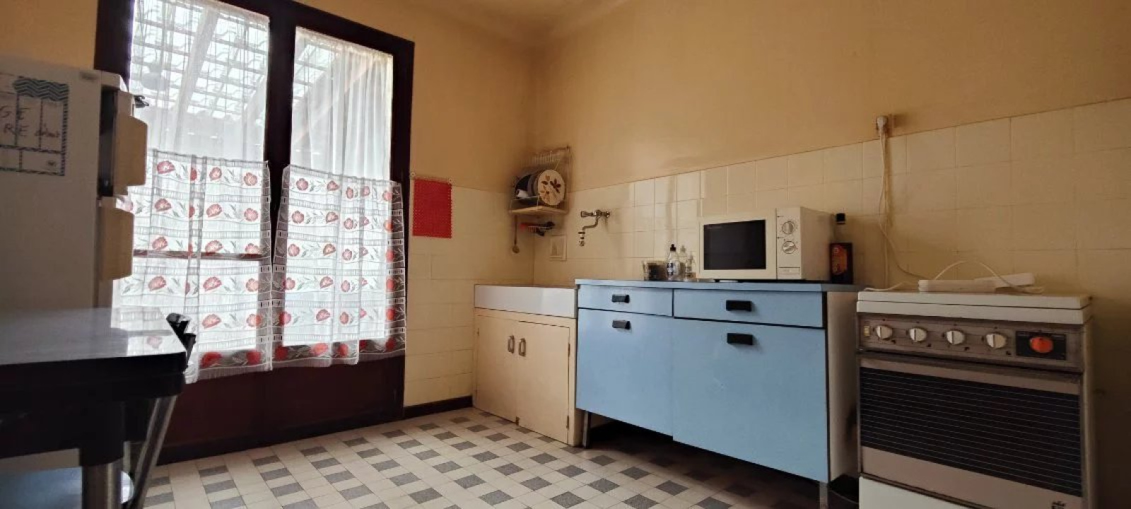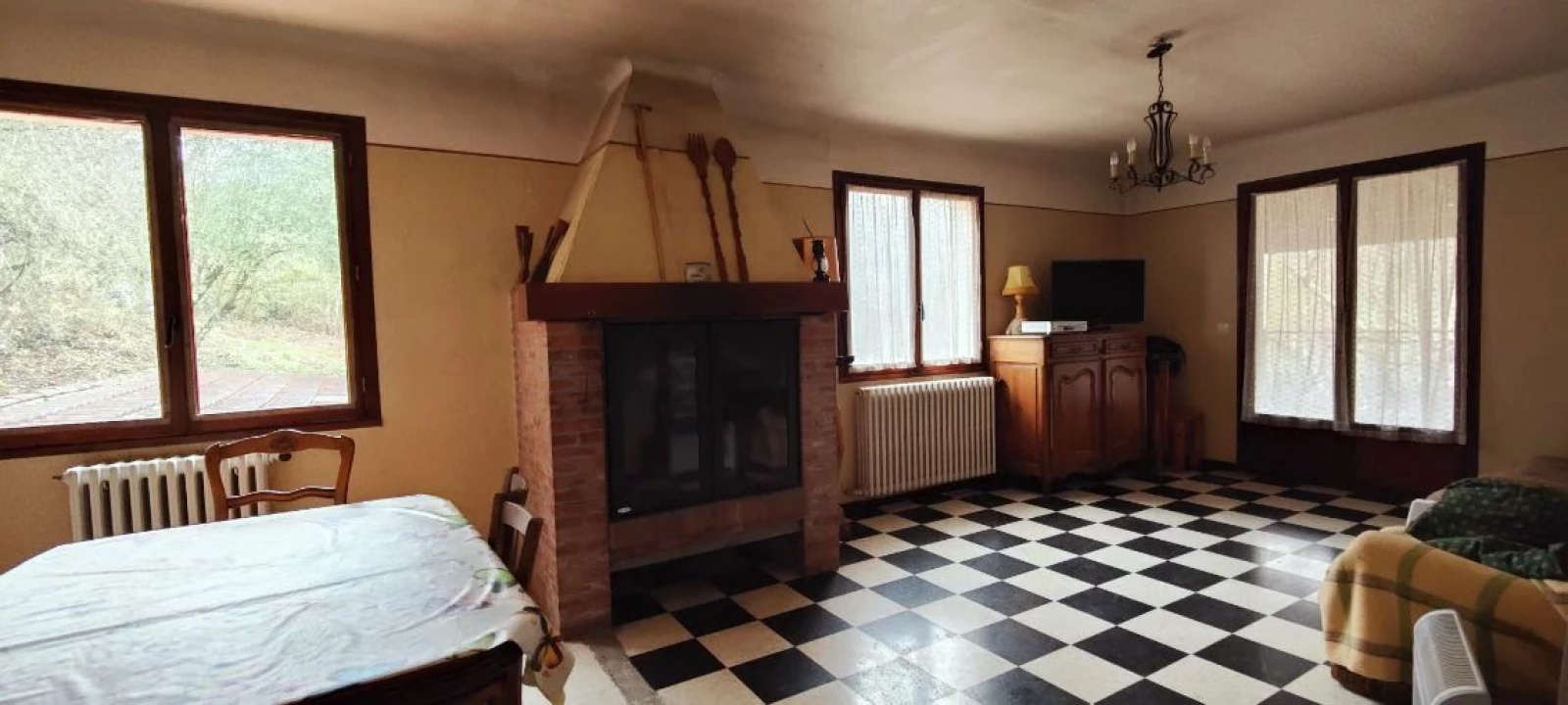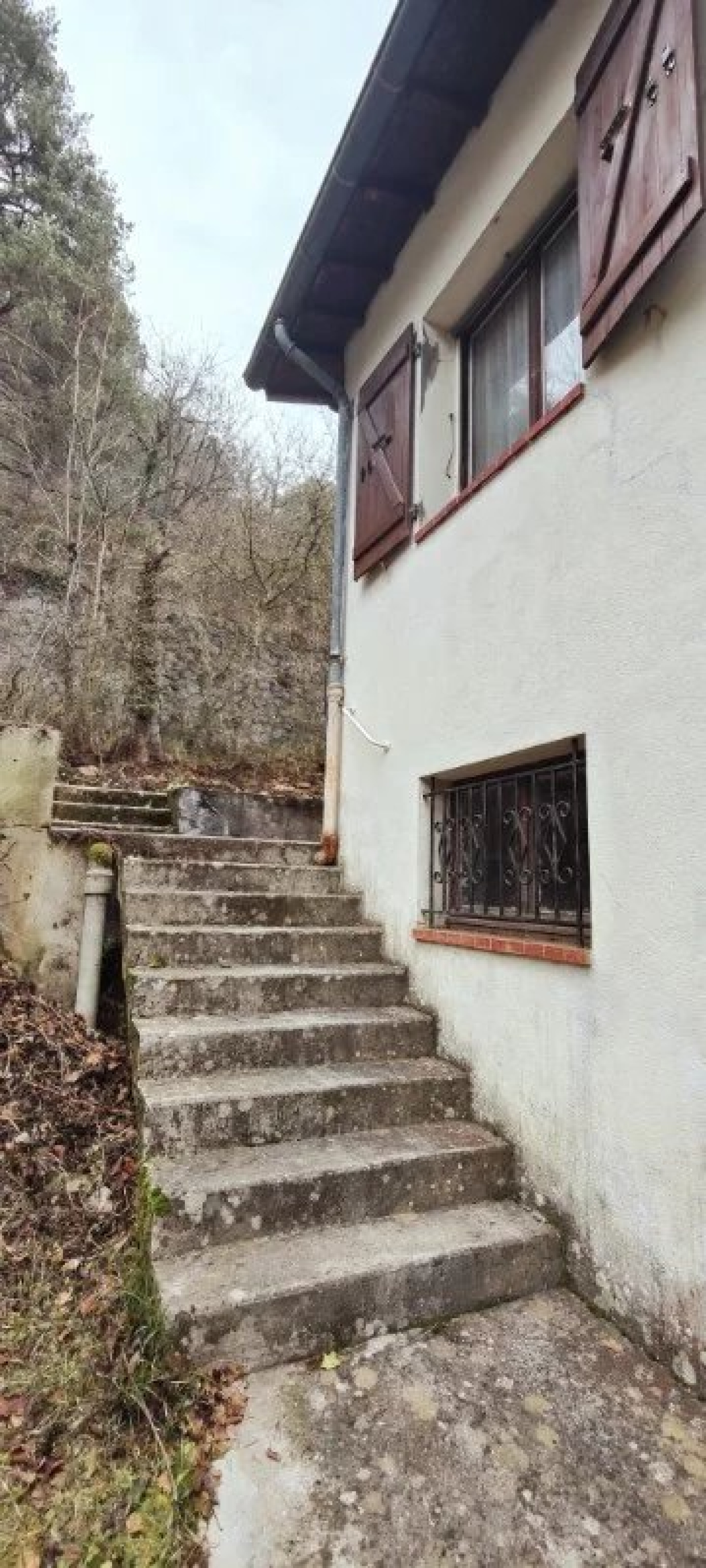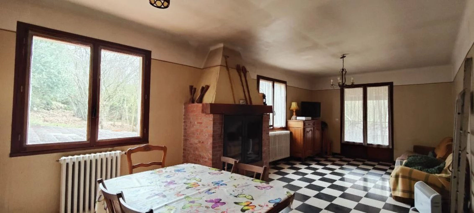 Sur un terrain de 2700 m2 environ, maison à rénover composée d'un garage avec cave et atelier en rez-de-chaussée, un appartement de 4 pièces, en premier étage , cuisine indépendante, vaste séjour avec cheminée, salle de bains, 3 chambres, WC indépendant, terrasse.